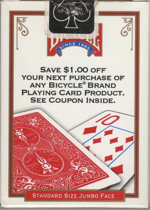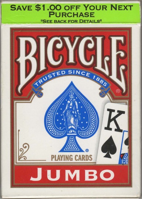 Bicycle Jumbo Index Red 2014 $1 off green stripe Rider Back Jumbo