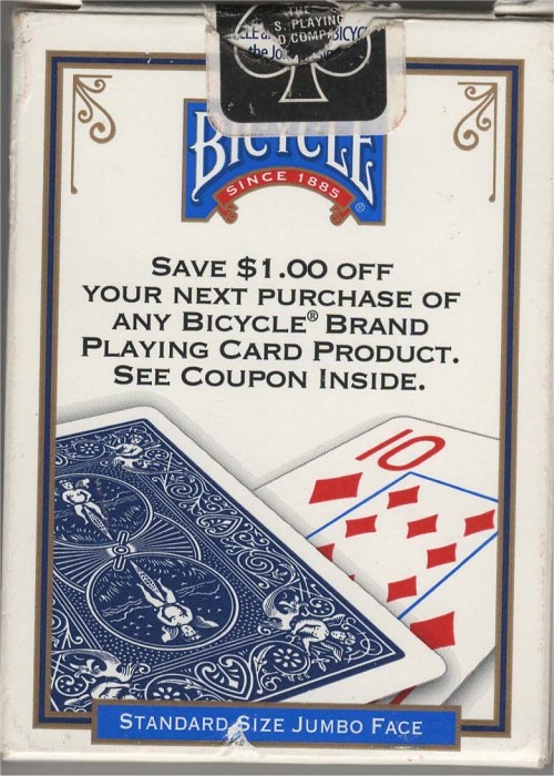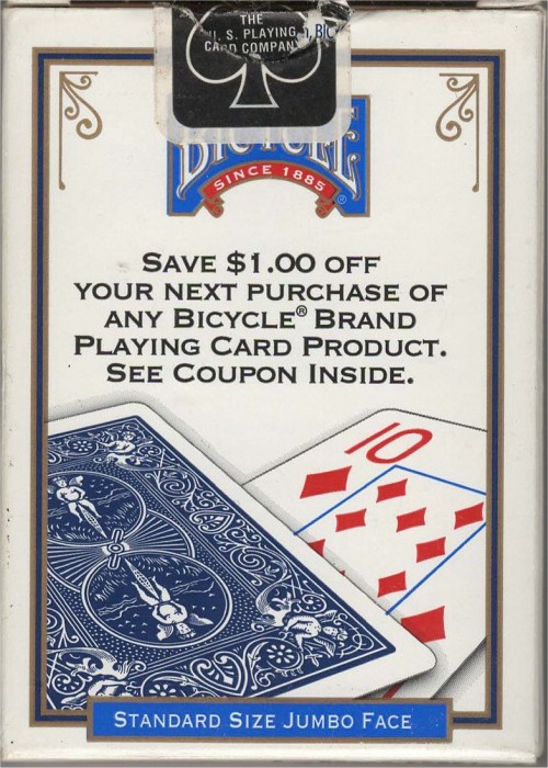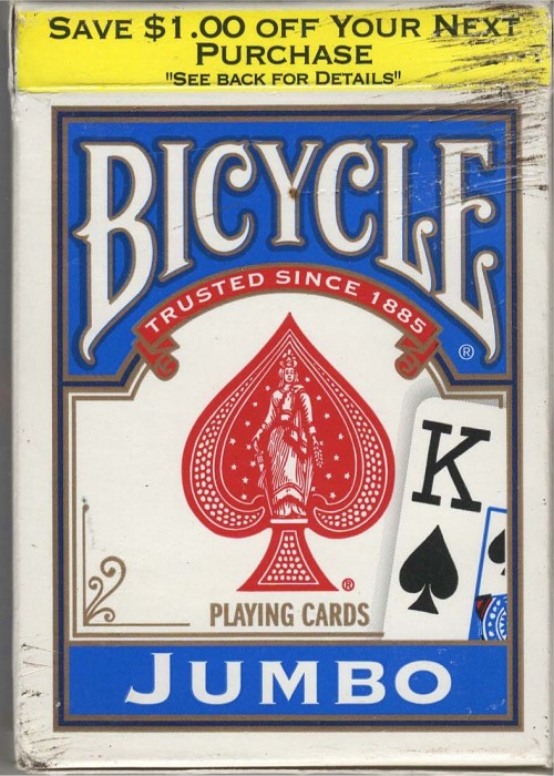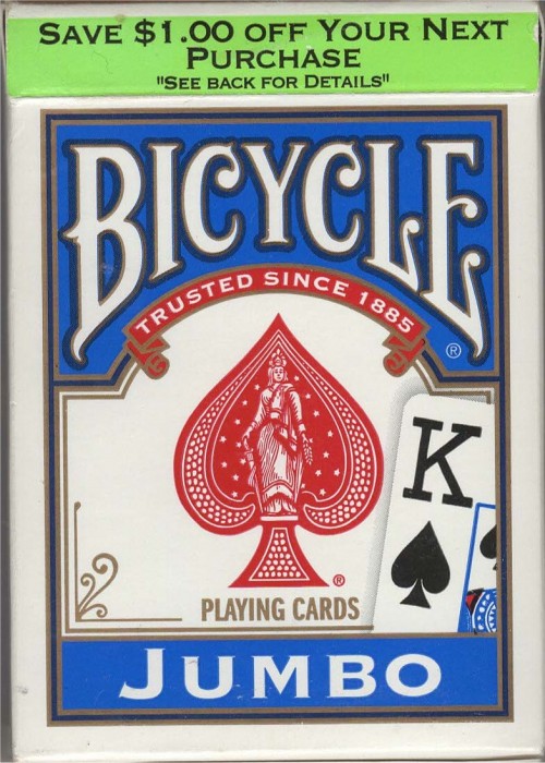 Bicycle Jumbo Index Blue 2013 $1 off yellow stripe Rider Back Jumbo