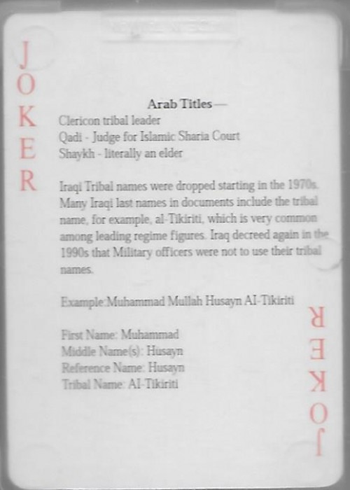 2003 Iraqi Most Wanted Issued by intelligence agency of United States of America