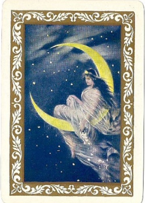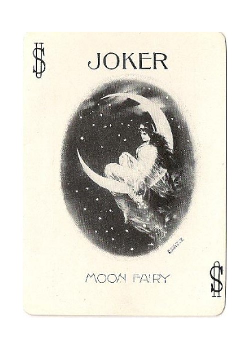 Congress No.606 deck titled “Moon Fairy” by U.S.P.C.C, 1899. This fine Ace of Spades was used on higher quality, gold edged editions which are relatively rarer to find. There were other versions of this back issued around the same time with a different Bordered or a black background.