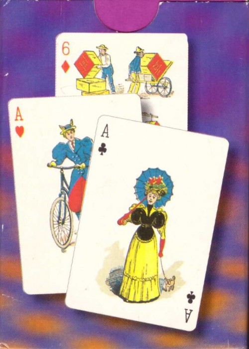 A replica/facsimile deck of the 1895 USPCC Vanity Fair deck created by the Museum of Fournier de Naipes which is a playing card museum located in Vitoria, Spain. It originated as a private collection in 1916 by Félix Alfaro Fournier, the grandson of the founder of Naipes Heraclio Fournier. Unlike the original deck which was poker size, this deck was printed in bridge size. The actual print date is not known and likely has undergone multiple reprints as needed, but is believed to be 2010 +/- 5 years for most decks.