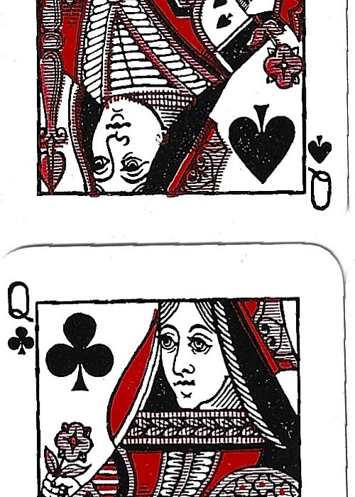 2 decks of Chas Goodall & Son Ltd decks dating from the early 1920’s, one red back one unknown. One joker per pack. A booklet of Patience Games, published by Chas Goodall and De La Rue. The cards are two colour, red and black.