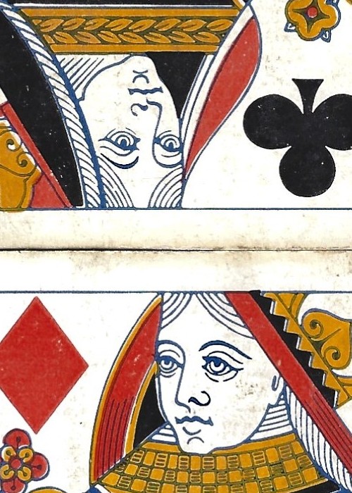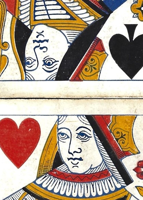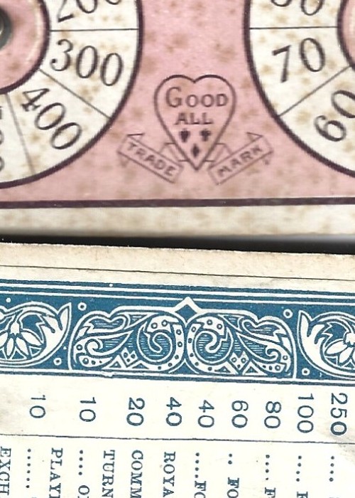 Goodalls branded twin deck of 32 cards, made in 1930 by Thomas De la Rue. Designed for the games Bezique and Rubicon.