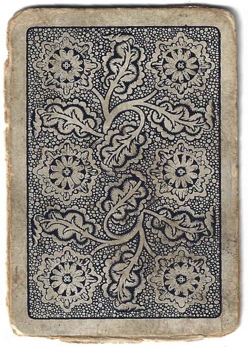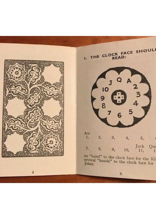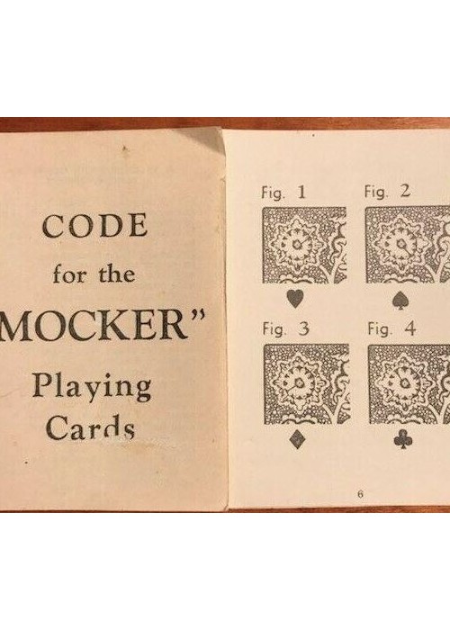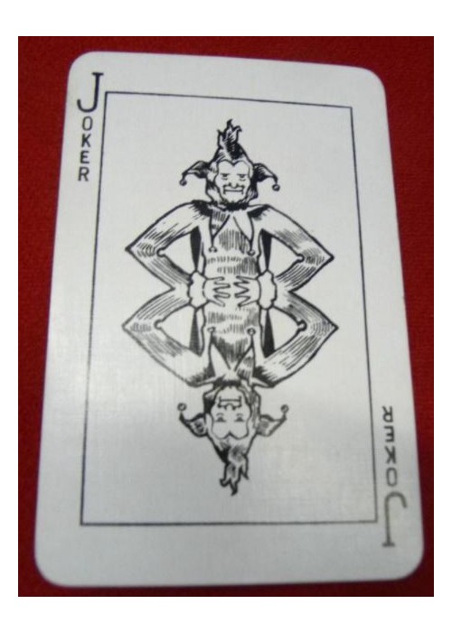 E & S manufactured games and magic from around 1935. These cards were made from that period until the early seventies. Alf Cooke apparently made them, under the E & S name. They are a marked deck. There was at least 2 styles of jokers. The set also came in red. 52 cards and 2 jokers. The deck is marked in the top left circular pattern, to identify both the suit and the number.