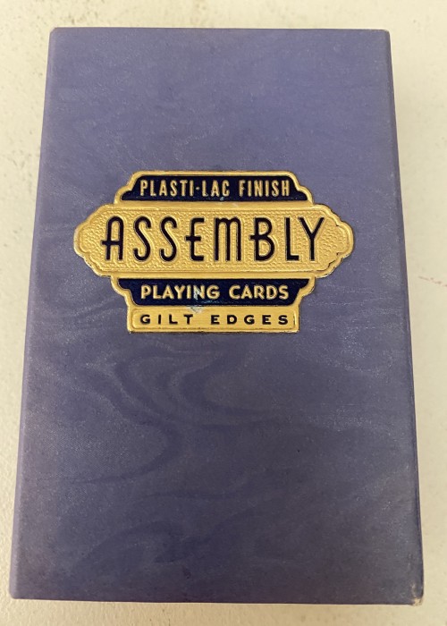 Vintage Assembly Playing Cards Gilt Edges Dog Design printed by Arrco Playing Card Co. Chicago Made in U.S.A. . Based off of the Ace of Spade in the deck, the Canasta set was produced by Arrco in around 1950.