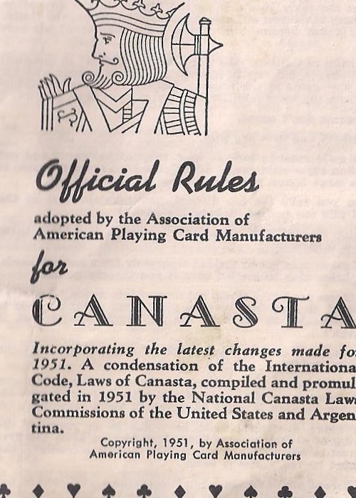 Two Deck Canasta set. Includes the Official Rules for Canasta booklet, dated 1951.