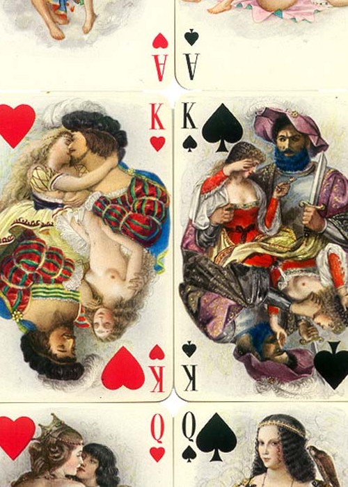 ‘Le Florentin’ luxury playing cards with miniature paintings by Paul-Émile Bécat, published by Éditions Philibert, Paris, 1956 Éditions Philibert published playing cards in Paris from 1954 to 1960. Paul-Émile Bécat produced the rich, Renaissance-style paintings that make this deck so extraordinary. It is probably the best known of the Philibert decks on account of the slightly risqué artwork. Their luxurious sensuality and tender intimacy have rarely been surpassed in any other playing cards and leave the viewer breathless and blushing.
