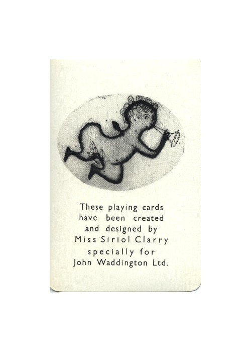 Bridge deck from 1960, in a thick cardboard fleur-de-lys sliding box. Siriol Clarry was an illustrator whose work included book covers and children’s books.
