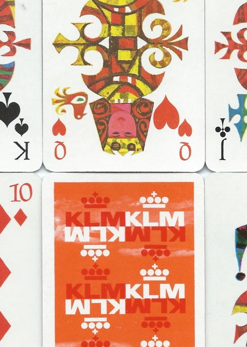 Playing cards designed by Max Velthuijs (1923-2005) for KLM airlines first published c.1964 and republished several times. Max Velthuijs was a famous children’s illustrator in the Netherlands.
