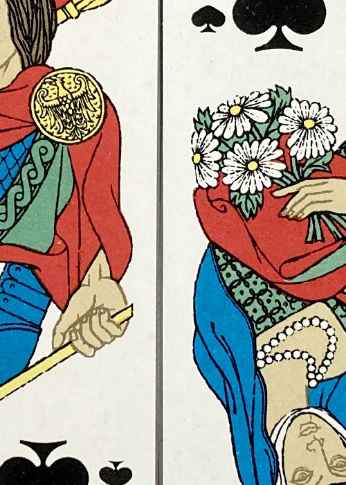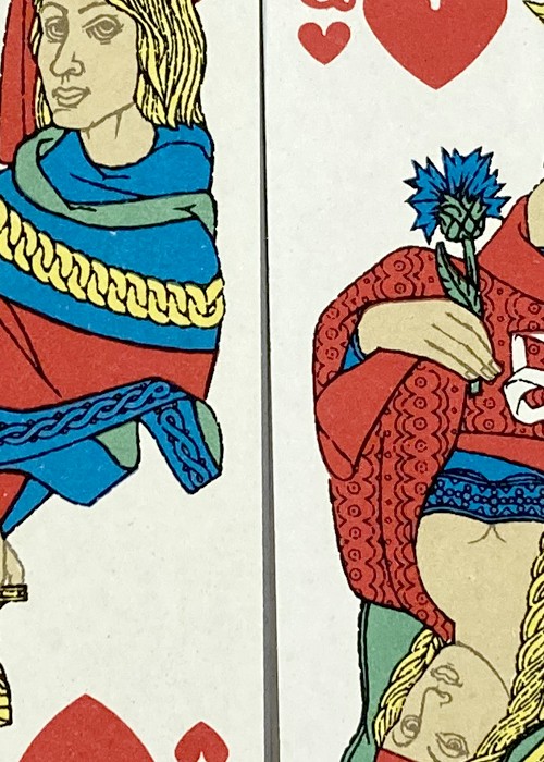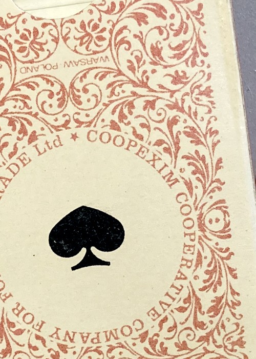 One of the wold’s most beautiful decks ever made. Designed in 1965 by Léon Urbanski for the world championship in bridge in Warszawa, Poland, 1966. There are two versions of this deck, with a red back and a blue one. This is the one with the red back. There is a ‘modern re-mix’ of this deck called Moon ’65: ——— https://moonplayingcards.dk/Moon65-Moon4 ——— https://www.portfolio52.com/deck/25779/view ———