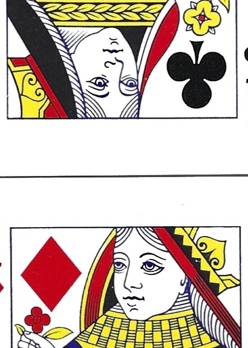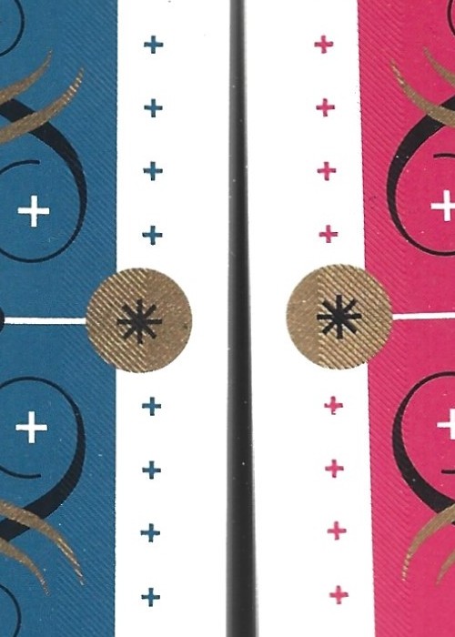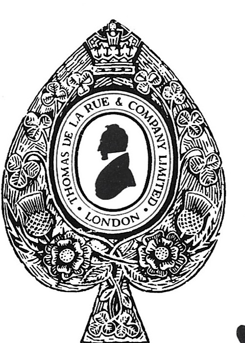 Twin pack of cards, one still sealed made by Waddingtons for De La Rue at the Leeds site, 40 Wakefield Rd. 52 cards, 2 jokers in each. Unknown wording on the back of Leigy Made between 1965-69