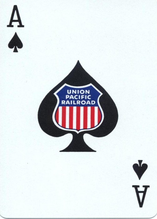 This deck was produced in 1969 to commemorate the centennial of the driving of the golden spike at Promontory Point, Utah, creating the first transcontinental railroad in the US.