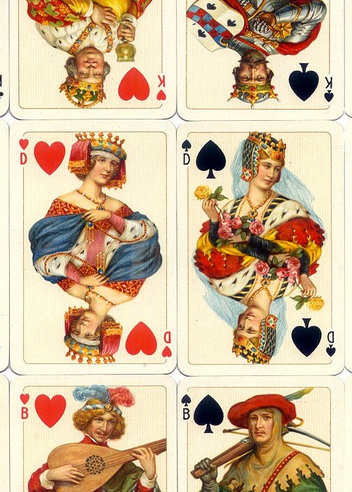 Originally released as Prince No. 402 by Dondorf in 1926. This reproduction set of two decks by ASS has also been released as Königin (Queen).