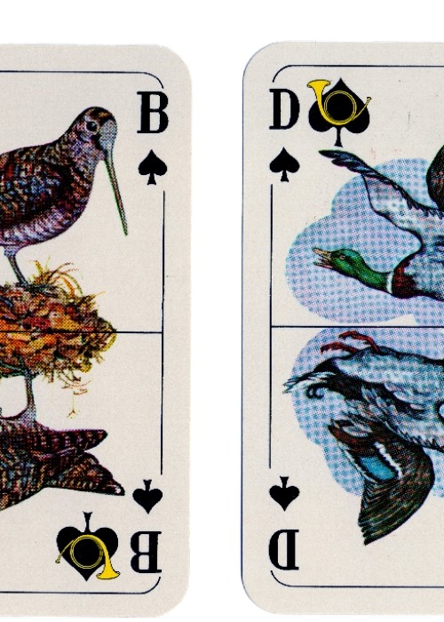 A standart bridge deck from Altenburg-Stralsunder depicting animals and associated symbols of hunting, produced in 1976. 52 cards + 3 jokers in box.