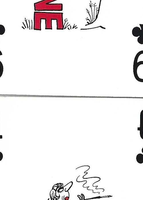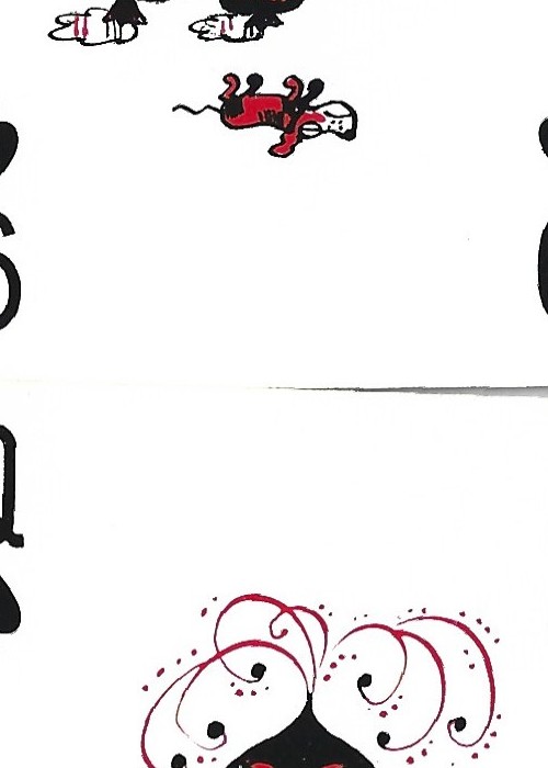 This set of cards was available only via direct order. It never sold in retail outlets. Produced by Carta Mundi, with a copyright date of April 1980, each suit was given to one of 4 popular UK artists: Stanley McMurtry MBE, known by his pen name Mac, is a British editorial cartoonist. McMurtry is best known for his controversial work for the British Daily Mail newspaper from 1971 to 2018. Manchester born Cookson saw his first cartoon published in 1965, in the Daily Mirror. Cookson’s cartoons were published in many publications including the London Evening News, the Sporting Life, the Daily Express, the Sun, the Mail on Sunday, The Oldie and The Spectator. He was also a regular contributor to Punch. Michael John Heath is a British strip cartoonist and illustrator. He has been cartoon editor of The Spectator since 1991. New Zealand born, Keith Waite has been referred to as one of the greatest-ever social and political cartoonists in Britain. The deck contains 52 coards and 4 jokers.
