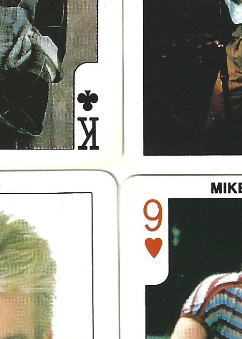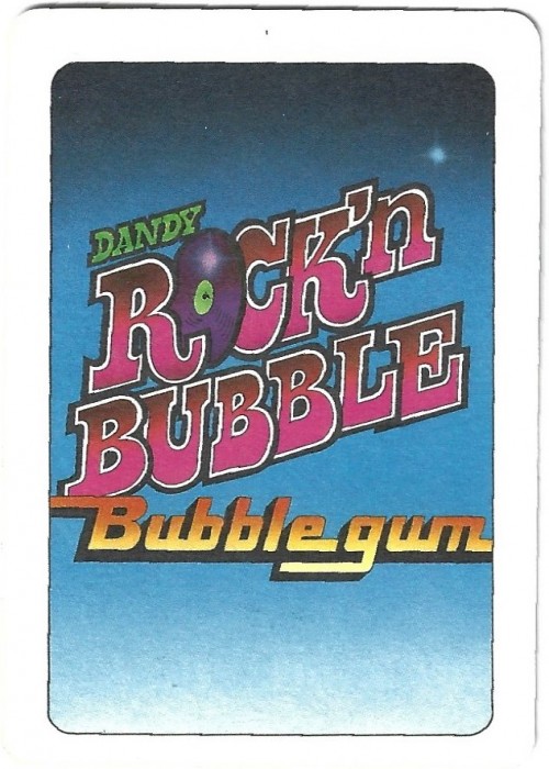 Produced in 1987 by a bubble gum company, Dandy in the UK. A packet would contain a stick on pink gum, with 3-5 cards. The entire set consisted of 52 cards, plus 4 jokers. Each front depicted a photograph of a current popular music artist in Britain. There was no box with the set.