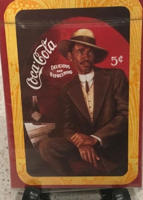 Black Americana Coca Cola Advertising “Delicious and Refreshing”. Artist is John Solomon Sandridge. Sandridge is an Alabama native and the first African-American artist commissioned by Coca-Cola. “Just Smile” is One of six in the “Just Smile” series. This self portrait was painted in 1993.