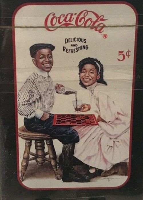 Black Americana Coca Cola Advertising “Winning Smiles”. Artist is John Solomon Sandridge. Sandridge is an Alabama native and the first African-American artist commissioned by Coca-Cola. One of six in the “just Smile” series.