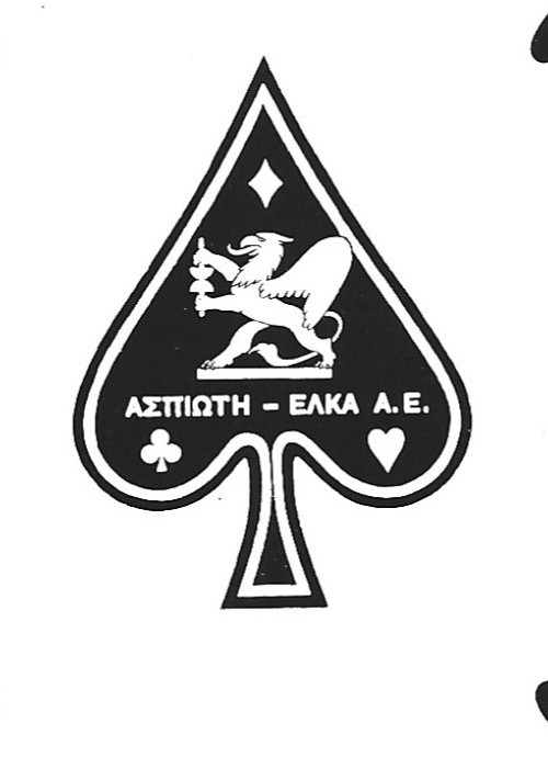 Standard 52 card deck with two jokers. Made by a company called Aspioti Elka, who went out of business in 1997. The tuck box has a security seal around it. The image on the back is of a naked Greek fisherman.