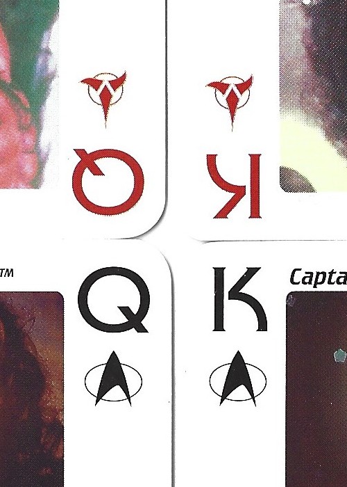 Reading the information from Star Trek the Next Generation (Daniel Vollmer) (portfolio52.com) Daniel Vollmer, from Germany, licensed these Star Trek cards to Paramount Pictures. Tricorder Records in Germany produced two versions of STTNG playing cards. One is a boxed set of two 55-card decks and the other is a single deck poker deck. However, this may be a THIRD deck, or the single poker desk referred to above, but is in actual fact a short 32 card deck, consisting of 7, 8, 9, 10, Jack, Queen, King, Ace and no Jokers. The suits are: Romulan, Federation, Klingon and Cardassian. The latter replaces the Borg suit, found in the 52 card set. There is a promotional card for Tricorder records, with a picture bizarrely of the classic Star Trek Enterprise. The sets were released in 1996.