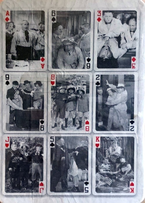 Poker playing cards with images from The Three Stooges show. The Three Stooges is a trademark of Comedy III Productions, Inc. The Three Stooges characters, names, and all related indicia are trademarks of Comedy III Productions, Inc. (c) 1997 Comedy III Productions, Inc. All Rights Reserved. Published by Boston America Corp