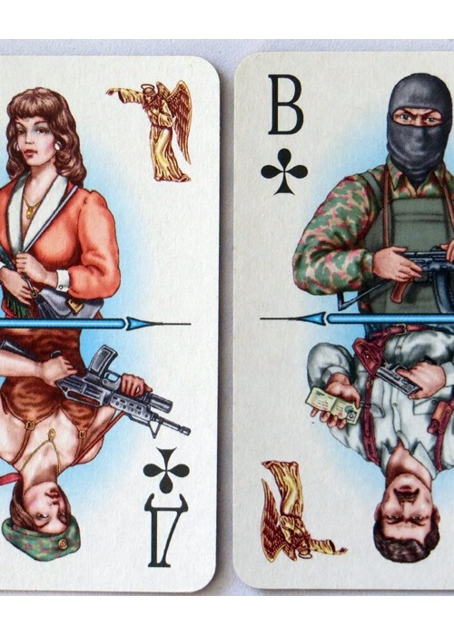 RUSSIAN DAME FORTUNE or MRS LUCK – playing cards 1998 – Published in 1998 By The Colour Printing Plant (Russia) for Combinat-service Printed on not the best quality card. Cards are fairly rough to the touch. There are 52 cards, plus 3 jokers and an advertising card. The 4 suits are themed along the lines of love, religion, power and money.