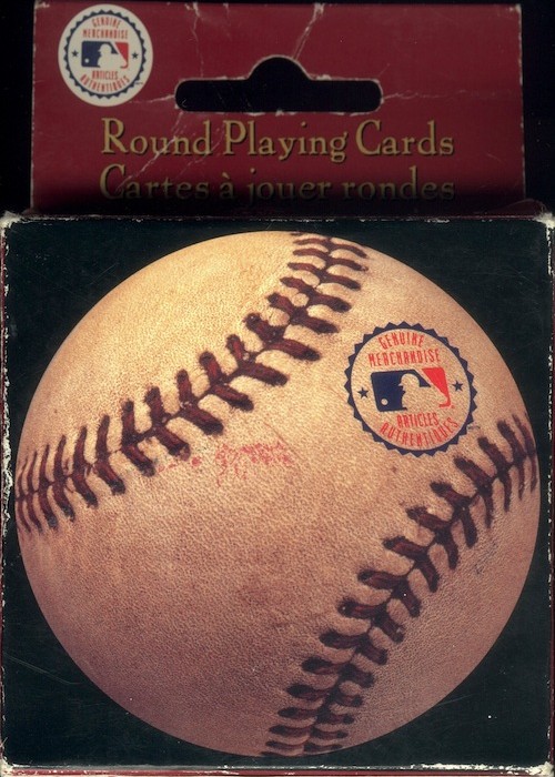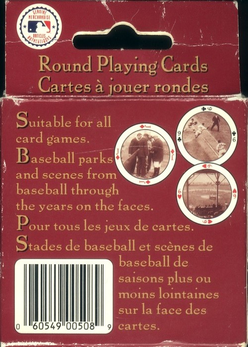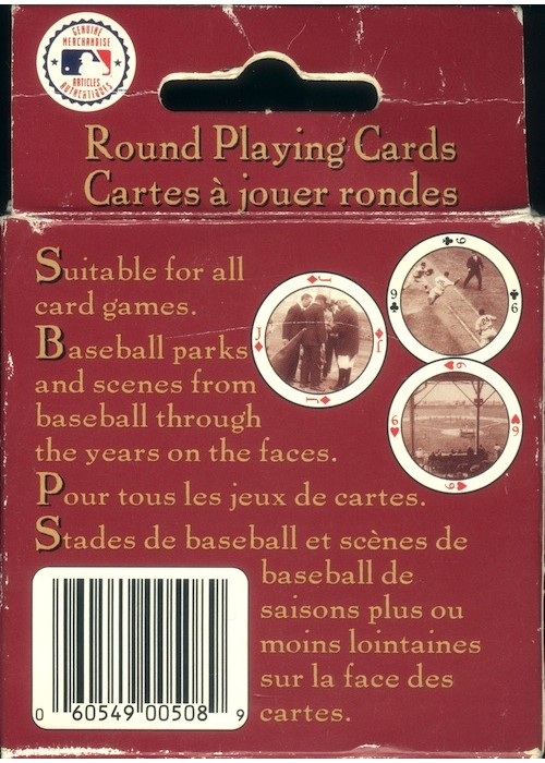 Round cards with baseball backs and historical sepia images from the game on the faces.