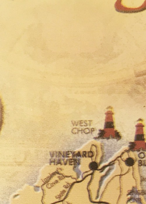 Souvenir from Martha’s Vineyard featuring a artistic rendering of a map of the area.