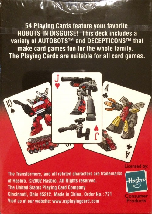 54 playing cards featuring a variety of Autobots and Decepticons. Released by Hasbro.