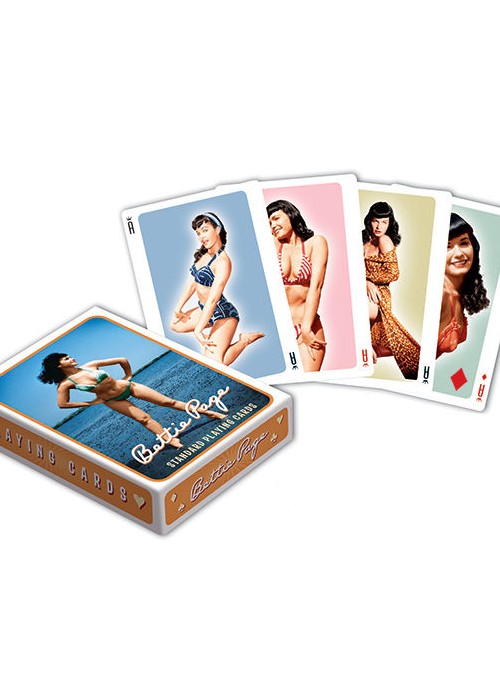 Released on November 10, 2004 by Dark Horse, the following is the description from the sales page: The Dark Horse design team has come up with a deck of cards that will provide a winner every time! On the back of each card is a playful photo of Bettie on the sand. Other tantalizing images of Bettie decorate the face cards: silly, seductive, demure, and outrageous, you can\’t deny the appeal of everyone\’s favorite pinup girl. Pack includes 52 plastic-coated cards, plus two jokers. https://www.tfaw.com/Profile/Bettie-Page-Playing-Cards___26700
