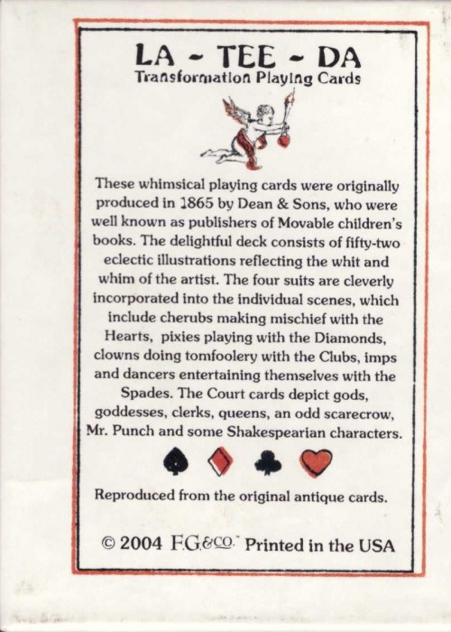 LA-TEE-DA Transformation Playing Cards are a reproduction of the original antique cards that were published in 1865 by Dean & Sons.