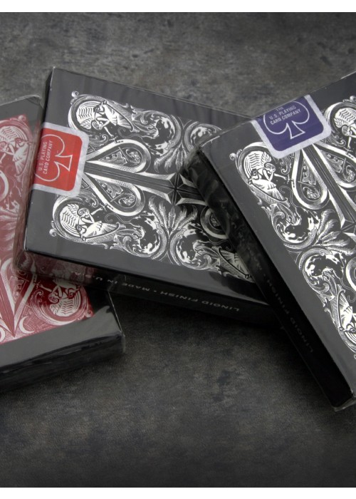 The Split Spade represents David Blaines logo and is featured in a brilliant back design created by M. Stutzman. The cards feature unique design details throughout including the DB Split Spade Logo on the ace of spades, a caricature of David on the face of the King of Spades, the now famous liar optical illusion, etc. The cards are printed for David by the United States Playing Card Company to his very strict standards in high quality Tally-Ho card stock with Linoid finish. The cards handle beautifully and are used by David in his daily performances. These are the original David Blaine playing cards, first commissioned by David Blaine and released to the market in 2005. The cards have Tally Ho’s classic linoid finish and are used by David Blaine and other sleight of hand artists. The back design was created by illustrator M. Stutzman and features subtle two-way images. Look carefully and you can see the Angel putting the serpent to the sword and a tiger in the shadow of the flames. Some of the court cards feature special faces; The King of Spades is David Blaine, the Queen of Hearts is his mother, and the Queen of Spades is Lonneke Engel (a close friend). The Ace of Spades will be recognized by many as the classic Tally Ho AoS. The cards are printed on Tally-Ho stock (Linoid Finish) with David Blaine’s high expectations. A must-have for all true collectors.