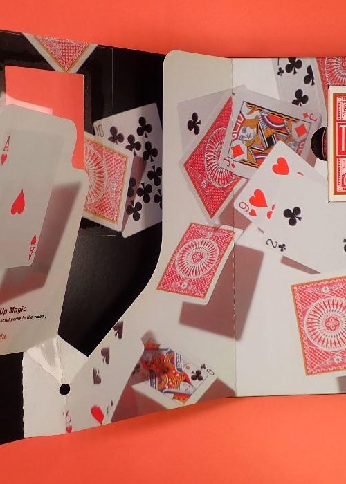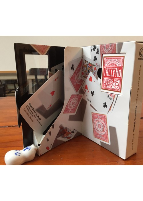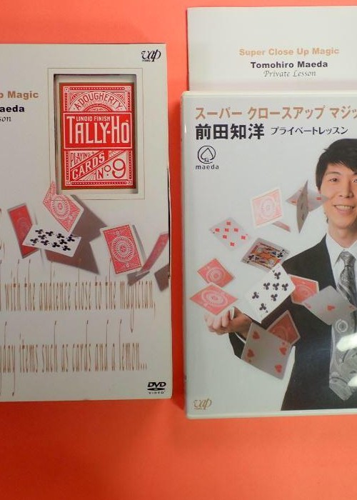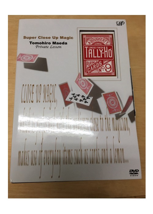 Sold in box set Super Close Up Tomohiro Maeda Private Lession. Include with 2 DVD teaching magic tricks Gold frame surround the back just like the other Maeda’s Tally Ho 54 cards: One colored Tally Ho Joker, one Maeda custom Joker. Half poker size