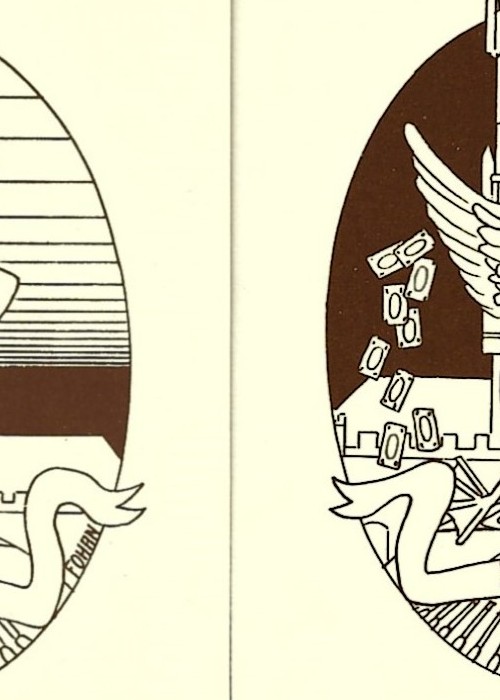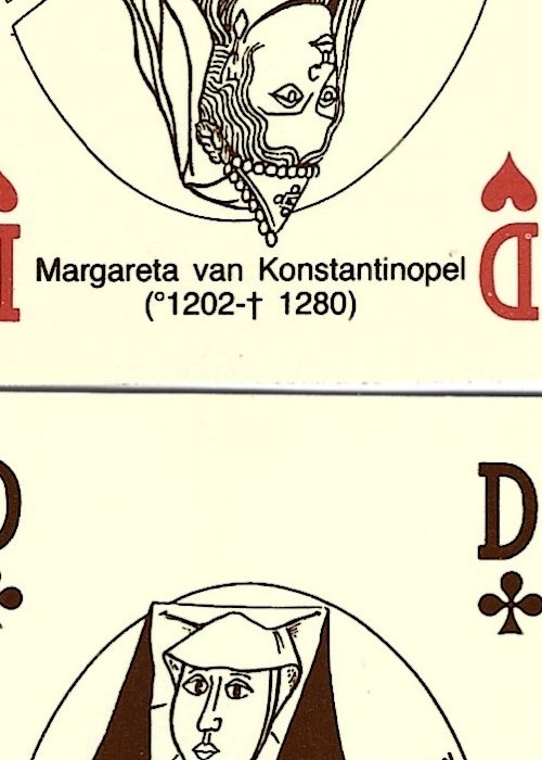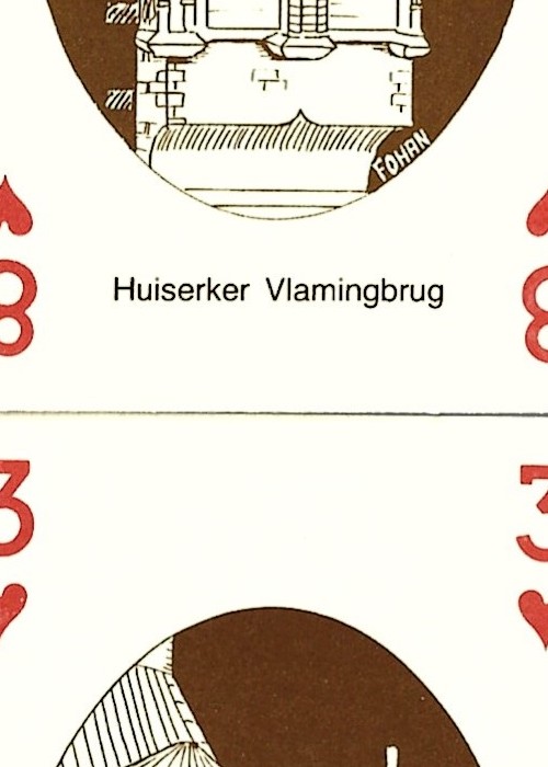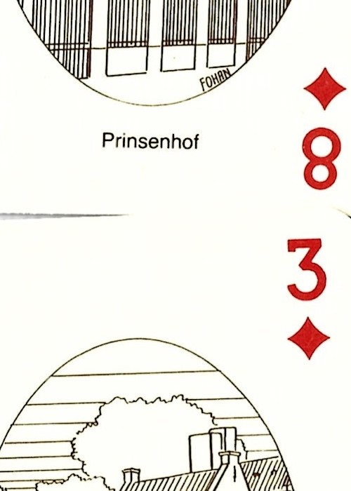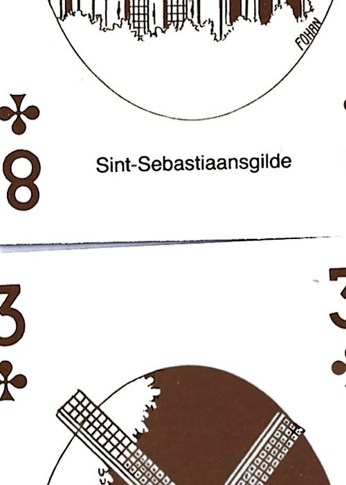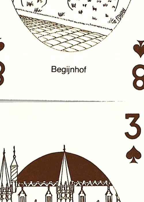 Interesting hand drawn deck, containing 54 different line drawings of monuments and famous people from Brugge. Includes 2 jokers and a route card around Brugge.