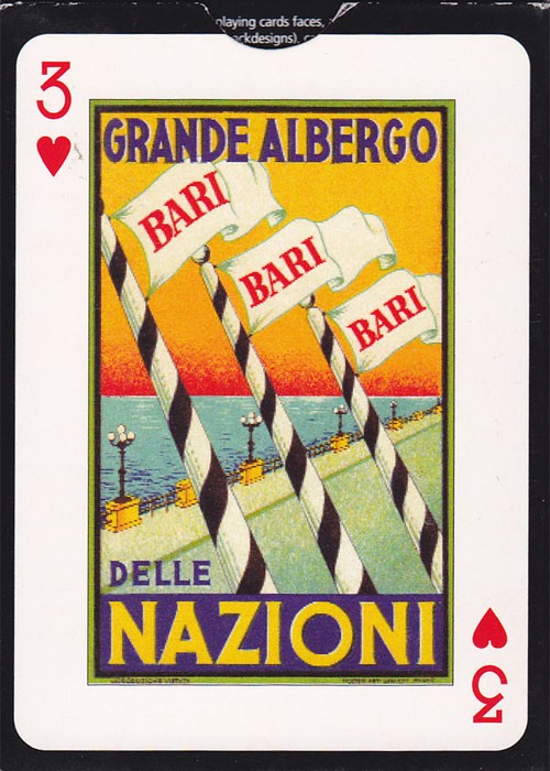 Playing cards featuring classic luggage labels from the 20s to the 50s, jewels of graphic design by unsung artists. These seductive labels, recalling a less hurried age, were pasted onto leather suitcases, proud mementoes of grand hotels, of elegant ships and of the lost glamour of flying. (Copy of the description on tuck box)