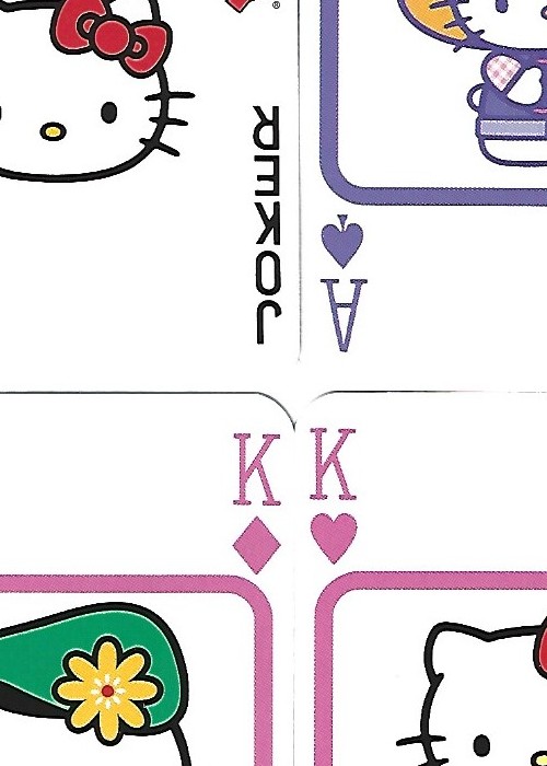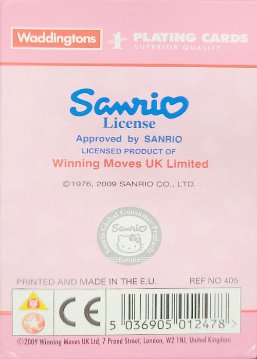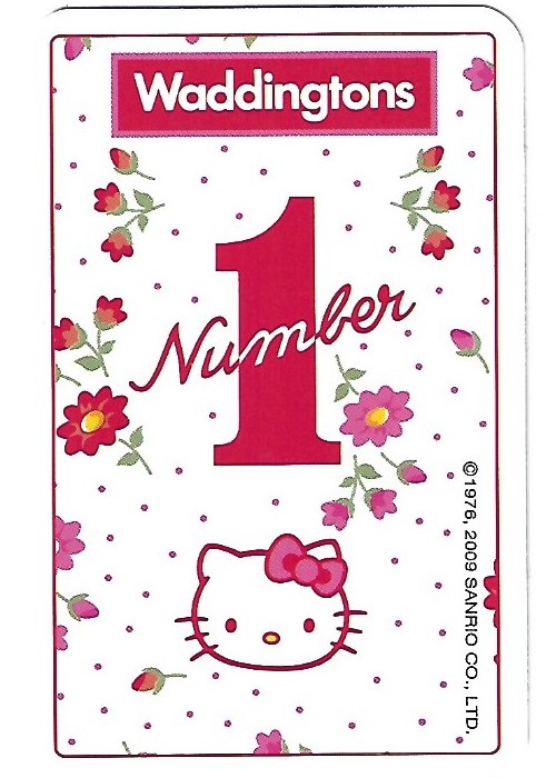 Released as part of Waddington’s popular Number One brand, is this UK Hello Kitty Deck. Consists of 53 different illustrations of Hello Kitty, (Kitty White) a fictional character produced by the Japanese company Sanrio, created by Yuko Shimizu and currently designed by Yuko Yamaguchi