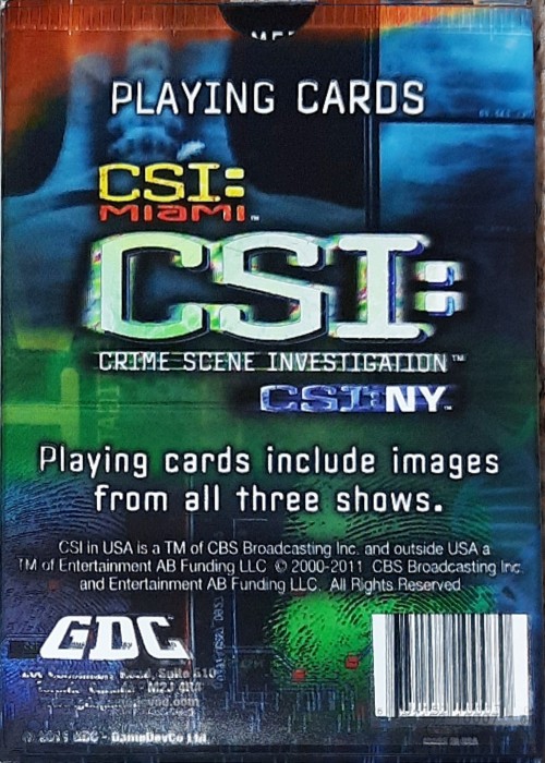 This deck contains images from the hit CBS shows CSI, CSI: Miami, and CSI:NY.