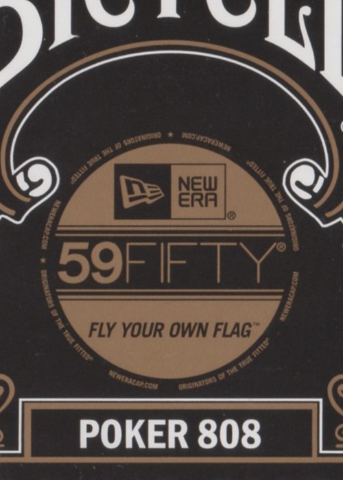 59Fifty New Era deck was made by U.S. Playing Card Co. for the New Era, a sportswear and cap company. The brand 59Fifty is a headwear/sports cap line for men. These cards were made a promotional item for stores in Japan. They were not available in rest of the world. The decks have red and blue pips and the jacks, queens and kings all sport the company\’s caps. The deck contains three jokers and a custom ace of spades, and one promotional card. The backs are traditional Rider Back in gold and black. There were two versions of these cards in existence: White version (more common) and Gold version (the rarest).