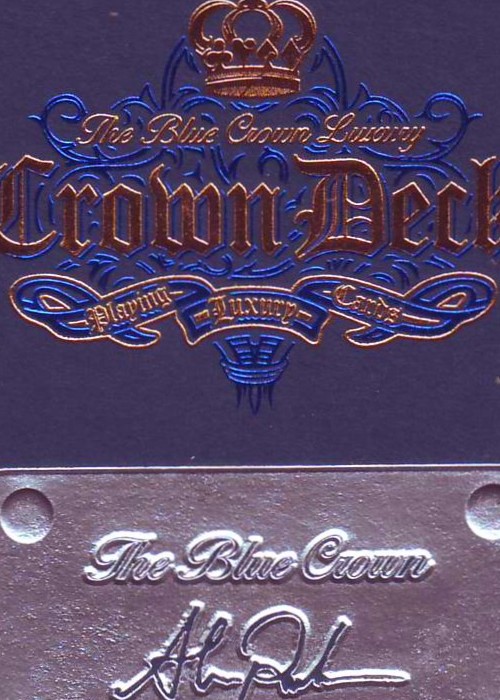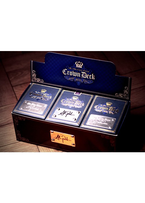 Our Most Amazing Deck to Date Designed by Randy Butterfield, The Blue Crown Luxury Deck is an elegant and premium version of our original Crown deck. The back design is printed in deep blue and metallic gold inks. The faces are a classic Arrco design with custom coloring on the court cards. We also have brand-new designs for the Ace of Spades and Jokers. The tuck box is a thing of pure beauty. Fashioned from blue vellum paper, the tuck does not have any printed ink. The design is created entirely from Blue, Gold, and Silver foil and multiple levels of embossing. Only 2,500 Decks Printed – Custom Brick Boxes Available For every 12 decks purchased, you will receive a custom-printed premium brick box. Each box offers dual functionality for storage or display and has a metal plaque autographed by Alex Pandrea. This is not only the best deck we have ever made – it is the best product we have ever made.