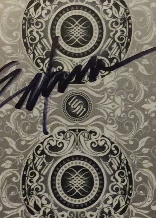 Produced in 2011, Erik Mana’s own personal deck of playing cards Version 1 of the Mana Deck is called The Oracle Edition. It was a collaboration between artist Esez Campaña and Erik himself – putting together elements of esoteric symbols and beautiful artwork, combined with an elegant mix of metallic colours. Praised by prestigious communities including the Conjuring Arts Research Center in New York, the Mana deck is still one of the most sought after playing cards in the world. The deck possesses beautiful artwork, but also includes elements with deep and enigmatic meanings – only a few of which were to be publicly revealed! For example, the tuck box has a 3 of hearts card reveal on the side flaps, while the box lid has the Latin words Magus Per Mens Et Manus, which means something like magician by mind and hand. Card Back As Erik describes it: The back exhibits a combination of ornate flourish designs as a reflection of all three art forms with its flowing swirls and organic movement. This deck reveals elements of circles to represent focus and unity and the number 3 is incorporated into the design as it represents growth and good fortune. Especially noteworthy, however, is that the design has a stunning 3D type effect, which makes it look as if the card back has layers that can be touched and felt! The 3D look is a remarkable and convincing illusion – suggestive of the other mysteries that this deck contains. The original design of this deck was blue, but this was later changed to silver to reflect the fact that the deck was produced in limited numbers (a total of 5000 were produced), and thus was intended to make the deck look more exclusive and rare. Five metallic ink colours were used on the faces, backs, and box. Court cards While the traditional court card designs were retained, each suit was given its own colour: Spades = purple; Hearts = red; Clubs = green; Diamonds = silver. Along with the addition of gold accents, this helps give each suit its own spirit and character. Number cards The number cards also have a traditional design. Meanwhile the Ace of Spades features flourishing swirls, and elements of three are present in its design (just as was the case with the back designs). Aces In many other decks the other Aces are neglected or overlooked, so to compensate for that, in this deck all four Aces have been given their own special framing. Furthermore, all the red pips in this deck have been given more vibrance and energy than normal, by being printed in a metallic red. Jokers Erik considers the Oracle edition of the Mana Deck to pay homage to three related art forms: magic, mentalism, and cardistry. These influences are immediately apparent when looking at the Joker, which was designed in honour of cardists. It pictures a visual display of the Oracle Cut, which is Erik’s variation of the Sybil cut with an `Angel’ display. Quality This deck was designed by graphic artist Esez Campaña, in collaboration with Erik Mana. It was produced by Manila based Cutting Edge, which is sole distributor of USPCC products and several magic brands (e.g. Ellusionist and Theory11) in the Philippines. Campana and Mana worked together in order to capture something of the spirit of a performer. In their words: Both magician and artist worked together to develop a unique deck that would transcend time and would embody the true spirit of the performer. What they conjured was a fusion of old world elegance with modern day artistic flare to symbolize the new era of magic & cardistry with the respect and foundation of the magic of the past. The design process took over 10 months, and the result was a deck of cards with the beautiful artwork seen in the accompanying photos. The deck was printed by USPCC, on 325 card stock with their usual Magic Finish, which is preferred by many for the smooth fans and flourishes it enables. It has the usual modern cut (back to face) used by USPCC, which Erik prefers because it allows for beautiful straight dribbles, perfect single hand faros and table faros, not to mention more accurate riffles, pinky counts and thumb counts. The finish and handling was exactly what was hoped for, with the deck fanning smoothly and evening, and the stock being crisp and yet springing well. The deck was so successful that it was sold out within a week of its launch! It is now considered a collector’s item, and typically goes for high prices on the secondary market.