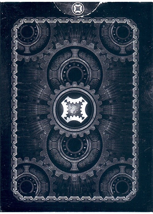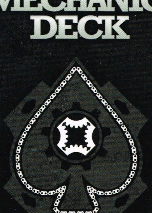Mechanic Deck by HOPS. Designed by award-winning artist Jimmy K of Mechanic Industries, the Mechanic deck has an animated back design. When arranged in numerical order and riffled like a flipbook the gears and chains will come to life! Because of the different back designs, you can also identify the values of cards at a glance, making this an incredibly affordable marked deck!