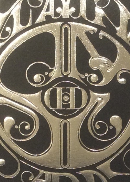 The tuck has a modified face design containing stylized ‘SM’ instead of the original piece of art. Only first edition box set decks (pictured here) come with the custom seal. Further reprints are without seal. Court cards are not the original Smoke&Mirrors courts but standard USPCC court cards. Cards are printed on a cream stock similar to the Vintage Plaid decks also by D&D.