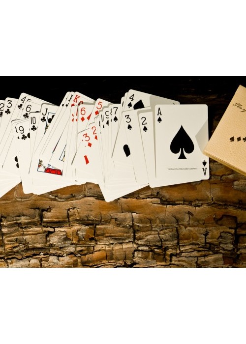 They were available in Arizona Red and California Blue. Printed by the US Playing Card Company on premium stock with a cambric finish. Incorporating a leatherette tuck case, off-white faces, and an organic array of colors, no detail has been spared. They came packaged in a bespoke carton for orders of a dozen or more.