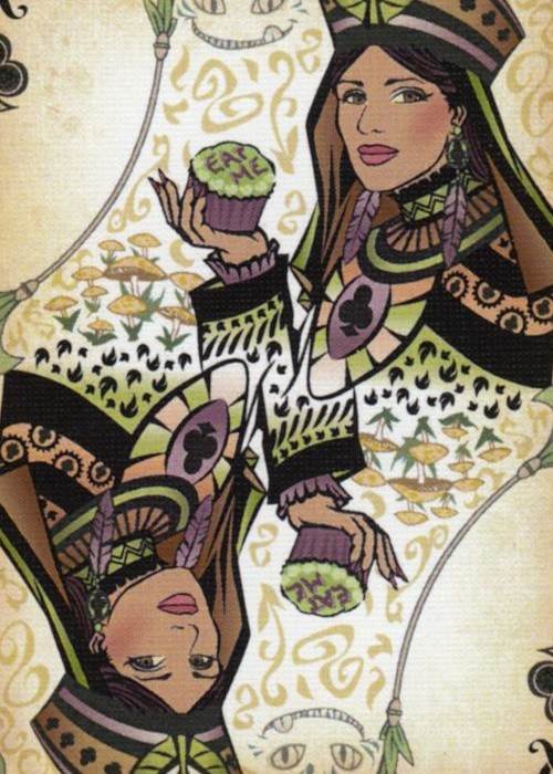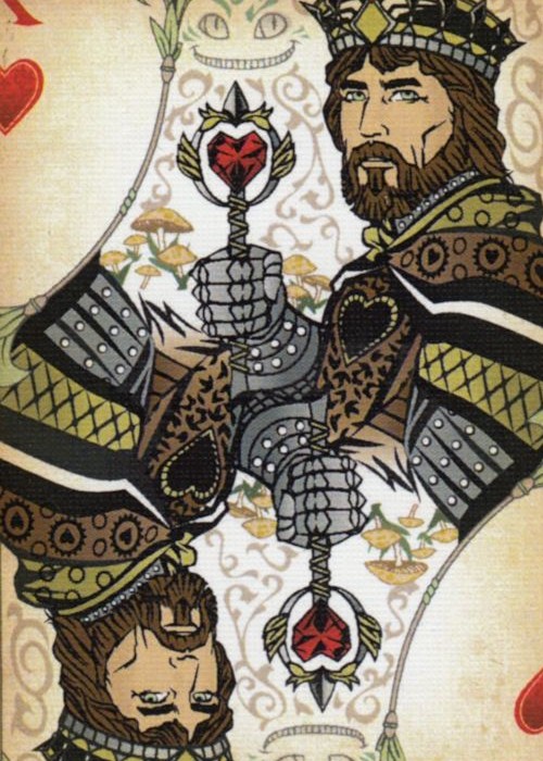 Why Steampunk in Wonderland? The original Wonderland story was written and set in the late 1800’s Victorian era. The genre of Steampunk derives from that same era so it ties in nicely with the Wonderland theme. However, my deck of Wonderland playing cards is part of a larger picture, one that tells the story of the continuing adventures of Alice. In this more mature setting, Alice is now a young lady and the world she remembers from Wonderland has changed, everything is now Steampunk – but still Wonderland. The 4 main kingdoms of Hearts, Clubs, Spades, and Diamonds, rule Wonderland. I am including Alice, the Hatter, the Cheshire Cat, and the White Rabbit as the Joker playing cards illustrated in full pose and in the same black and white line art as the royal face cards.