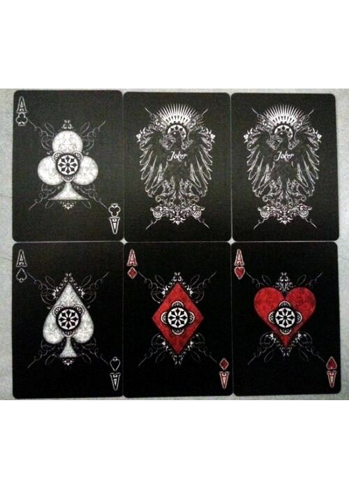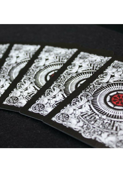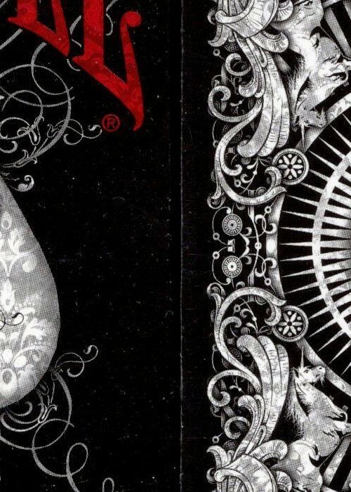 Bigblindmedia presents a beautiful new addition to the Bicycle Karnival range of playing cards – The Karnival Elite Deck. Featuring a slinky, edge-to-edge black redesign from renowned artist Sam Hayles, this deck is simply stunning. Looking like the kind of accessory that a debonair Card Sharp would employ, this deck is sure to turn heads. This highly collectable deck, (available in a VERY limited run of only 5000 units!), is certainly more restrained than previous Karnival designs. Indeed, the Karnival Elite Deck employs elaborate baroque patterning and delicate swirls on the back design and box. From the intricately designed tuckcase to the eye catching ‘glow’ on the pips of the spades and club cards (designed to make the values ‘pop’ from the card), this deck was created to be something that you would break out for a very special evening of entertainment… be it gambling, card magic or just plain showing off! Brought to you by BigBlindMedia, the Bicycle Karnival Elite Deck has the USPCC world famous Air Flow Finish for superb handling and unparalleled durability. It also uses a thick, high grade stock which make the cards a dream to handle. Each Karnival Elite Deck features a standard red Bicycle Deck’s ‘7 Of Clubs’ FACE UP in the centre of the pack. A fact that some magicians out there just might be able to find some rather interesting uses for!!!