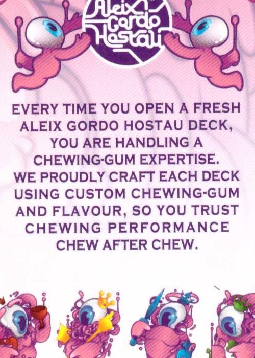 Aleix Gordo Hostau, a renowned muralist and street artist out of Barcelona, Spain, designed these playing cards for the Bicycle® Brand. His graffiti and street art are well-known amongst followers of the urban art scene, and his bubblegum monsters are some of his most popular designs. See them in action on every card in this deck. The Street Art Deck features original artwork on the front and backs of the cards, including the face cards and jokers. These decks were printed in the USA at the United States Playing Card Company and printed on premium stock with a quality finish.