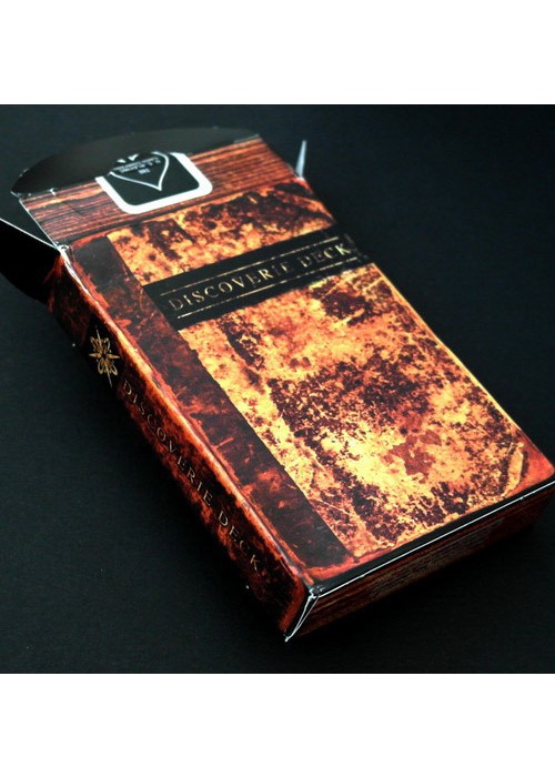 The Discoverie Deck is designed in the style of a rare, first-edition Discoverie of Witchcraft. Intricate woodcuts from the book are featured on the faces of the cards, and the Aces are adorned with a passage from the book, written in an elegant calligraphic style of the day. The tuck case acts as covers to protect the pages of cards within. The Discoverie Deck is printed on premium-grade USPCC stock.