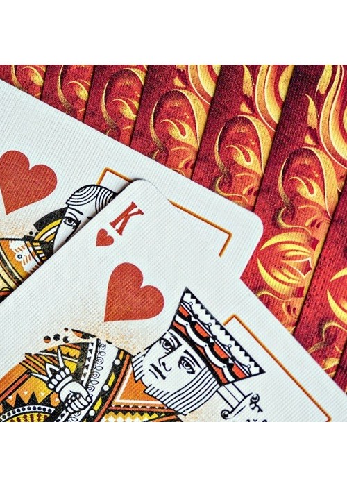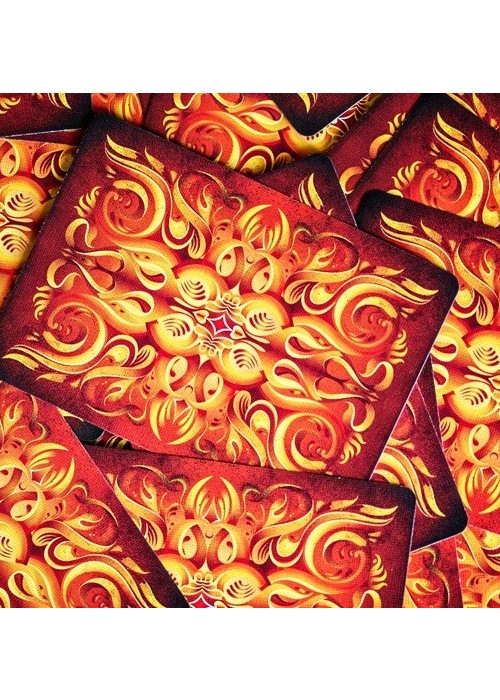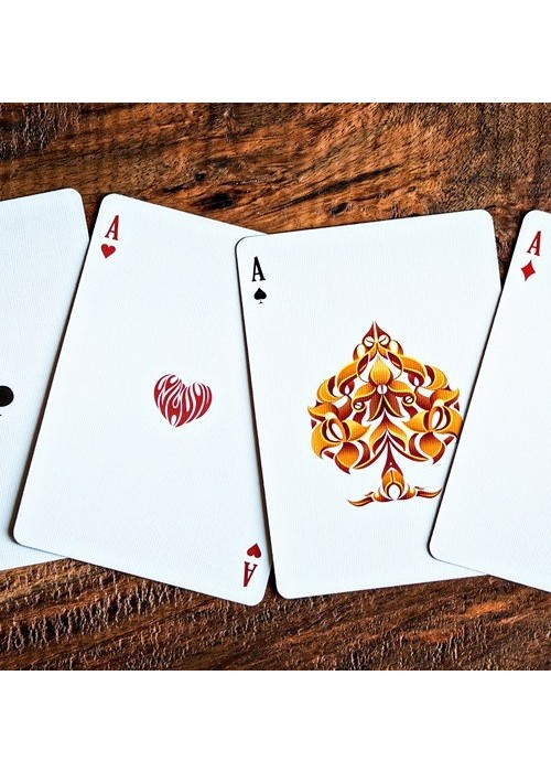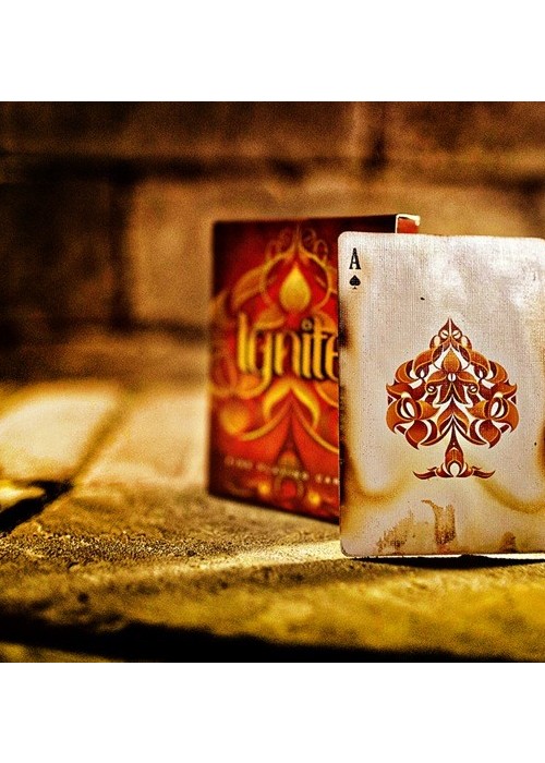 Ignite has been carefully matched with the design and tones of Fathom to create dramatic contrast in color changes and flourishes. Get your Bricks Now. The second release in the Origin Series, Ignite Playing Cards captures golden flames, glowing embers and the smouldering black char of a scorching inferno. From the blazing ace of spades on the front of the box, to the world of flames on the back, there is no mistaking the theme of this deck. Featuring line-art embellished pips, court cards colored in the orange glow of a dying hearth, and polarized jokers, reds and blacks in contrast, for a color-change illustrating the very name of the deck; Ignite. Conjure the spirit of fire and set your performances alight.