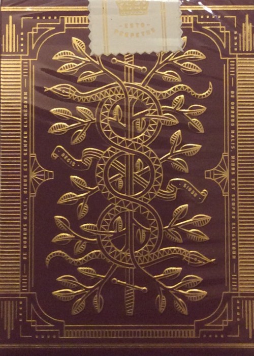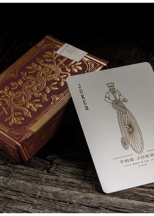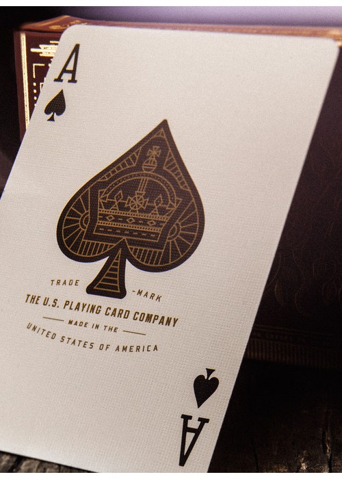 Clear thread around tuck box, as opposed to the gold thread on the v2. On right side of tuck it reads U.S. Playing Card Company. Original Theory11 circle logo on bottom of box.