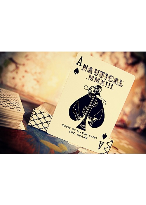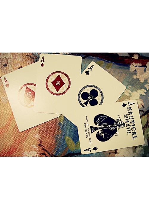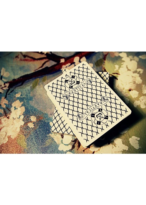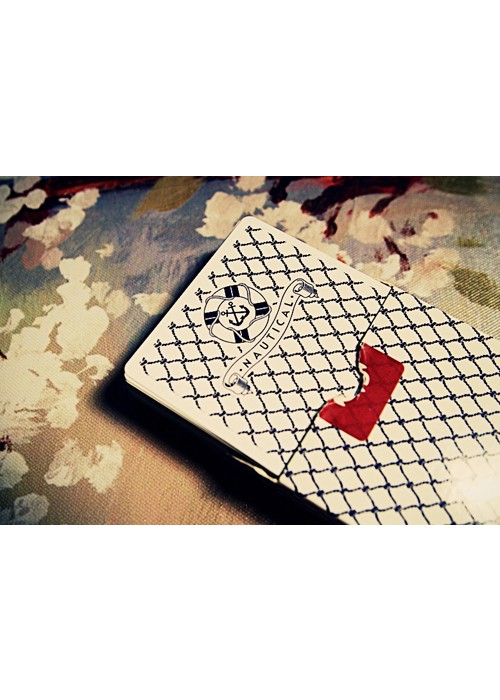 A very rare white version of the Nautical deck. This deck features the same custom faces and sea-worthy theme as the Red and Blue decks, but with a white back design. The tuck box has an all-over net pattern. The white deck also features its own unique designs for the Aces and a custom seal. Like the Red and Blue decks, the White Nauticals feature a thin and snappy stock that’s very durable and long-lasting. This deck is limited and will never be reprinted.